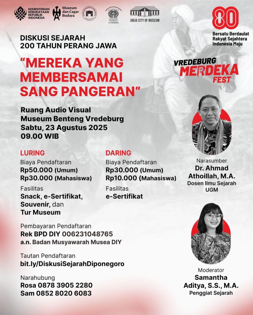 Penasaran siapa saja yang setia mendampingi Pangeran Diponegoro? Bergabunglah dalam diskusi seru yang akan mengupas tuntas para pahlawan tak terduga di balik 200 tahun Perang Jawa. Saksikan langsung cerita dari para ahli!